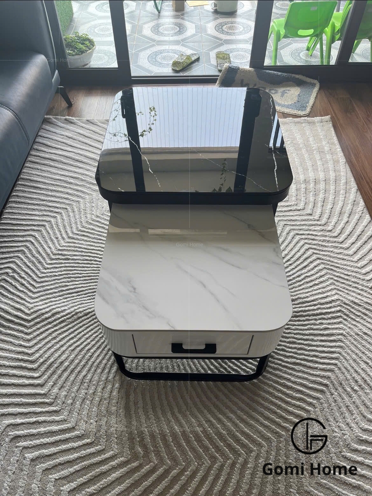 Bộ bàn sofa Sophie lồng nhau hiện đại: Mặt bàn đá cẩm thạch/ceramic, thẩm mỹ và độ bền cực cao.